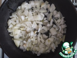 Лук порезать и обжарить до золотистого цвета.