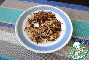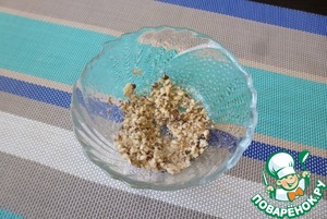 • Приготовить заправку для салата. Грецкие орехи размять пестиком.