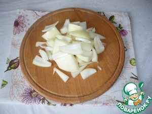 Репчатый лук нарезать крупными кусочками.