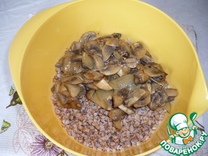 Соединить с гречневой кашей обжаренные грибы и лук.
