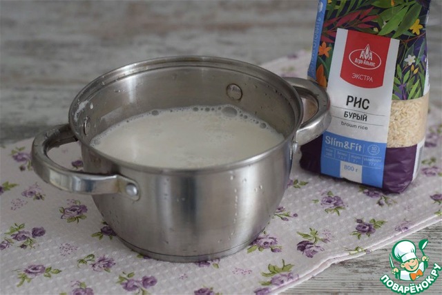 Замочить рис на 12-14 часов, полностью покрыв водой. Можно использовать и белый рис. Но из бурого молоко получается более насыщенным. Я готовлю десерт из бурого риса ТМ "Агро-Альянс" Экстра.