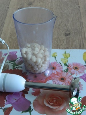 Пробьем блендером фасоль, потом добавим печеное яблоко и доведем до однородного состояния массу. Масса получилась нейтральная. По вкусу добавляем соль.