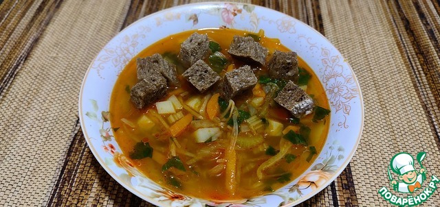 Думая о далёком детстве, я вспомнила как бабуля собирала кусочки несъеденного засохшего чёрного ржаного хлеба, сушила их и складывала в холщовый мешок. Был такой хлеб ржаной, буханка стоила 14 копеек. Затем из этих сухариков делался квас и ещё варились простые щи и подавала бабуля их с этими сухариками, выложив их в центр тарелки. Очень мне нравился вкус этих размоченных сухариков во щах со сметаной. Делали наверно так многие, хлеб берегли и не выбрасывали. Вот и я сегодня решила сварить постные щи, а сухарики заменить на ржаные хлебцы.