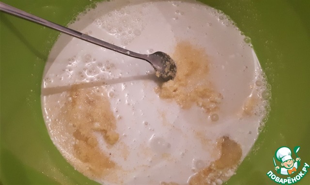 Крупу смешиваем с сахаром, заливаем кокосовым молоком. Настаиваем примерно полчаса.