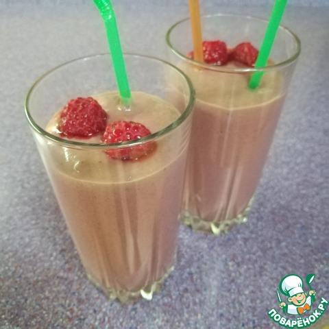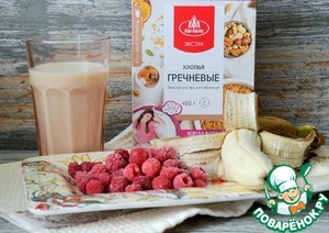 Рецепт «Бананово-малиновый смузи с гречневыми хлопьями»: