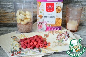 Ингредиенты для «Бананово-малиновый смузи с гречневыми хлопьями»:
