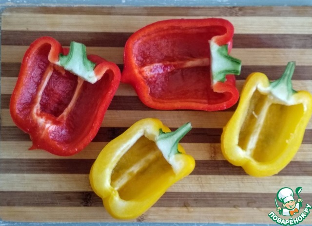 Перец хорошо помыть, разрезать пополам, очистить от семян.