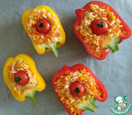 Рецепт «Перцы, запечённые с рисом и овощами»:
