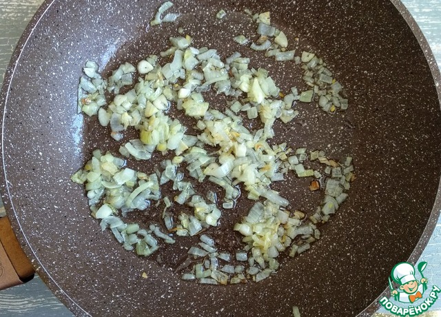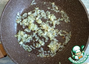 Лук и чеснок почистить, нарезать кубиками, обжарить в оливковом масле до золотистости.