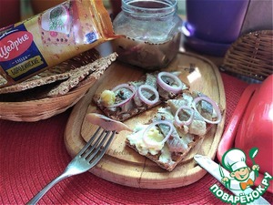 Рецепт «Бутерброды с сельдью домашнего посола»: