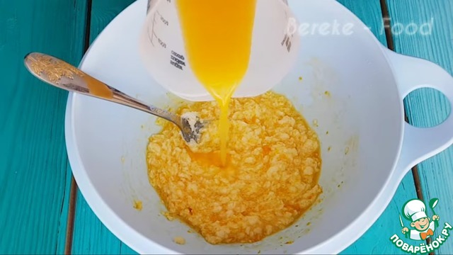 И добавляем сок апельсина и снова размешиваю