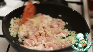 Добавляем фарши и обжариваем до полной готовности.