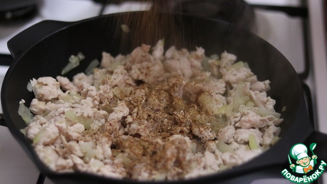 Во время обжарки добавляем соль и специи.