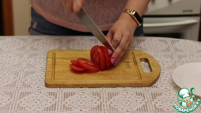 Помидоры нарезаем кружочками.