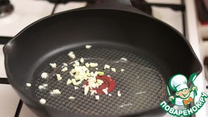 В разогретой сковороде с добавлением растительного мала обжариваем чеснок.