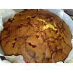 Выливаем тесто в форму, простеленную пергаментной бумагой. У меня – диаметром 18 см.