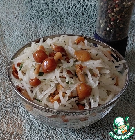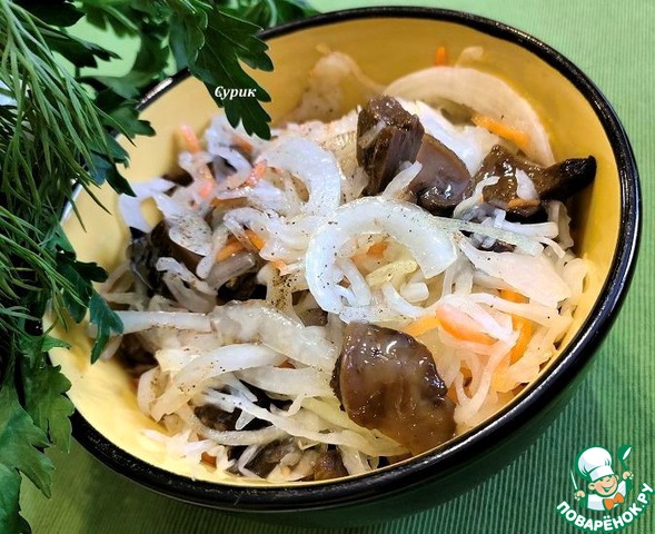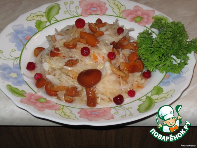 Рецепт «Салат из квашенной капусты и маринованных грибов»: