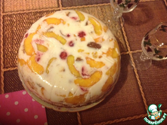 [+5]Забираю к себе! Отличный летний вариант тортика с сезонной фрукточкой! У меня клубника, персики и яблочки, все свежее!)))