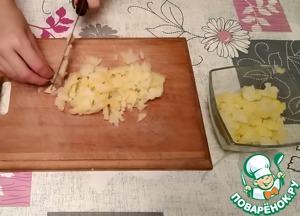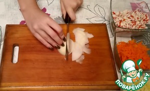 Маленькую луковицу нарезаем полукольцами, можно порезать мелко.
