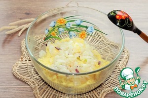 5. Половину пассеровки добавляем в миску с кашей и перемешиваем.