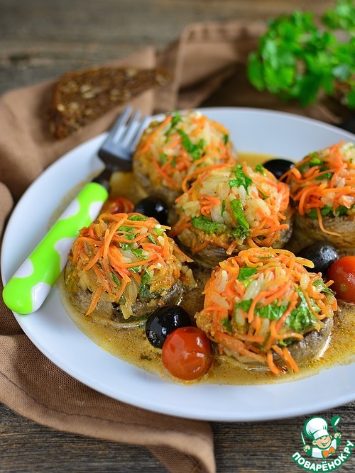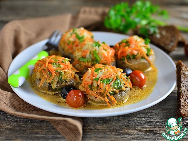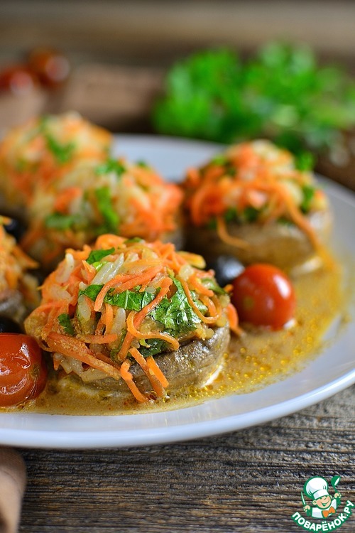 Постное блюдо из крупных шампиньонов, фаршированных начинкой из риса с корейской морковью! Тушение в очень вкусной подливе на основе овсяного молока со специями и с добавлением маслин и черри. Блюдо украсит и праздничный стол своей яркостью и ароматами! Вкусно как в теплом, так и охлажденном виде. А готовить не сложно и быстро!