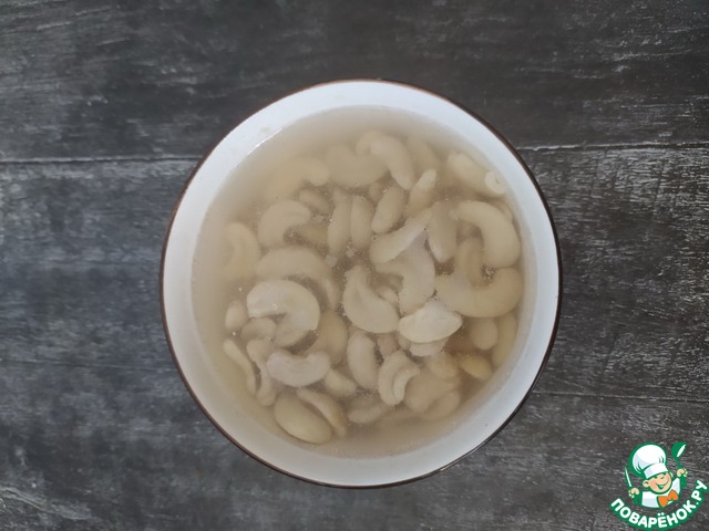Поместите кешью в миску и залейте теплой воды, выше орехов на 5см. Замочите не менее чем на 4 часа (до 8 часов).