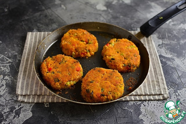 Рецепт «Пшенные котлетки с брокколи и перцами»: