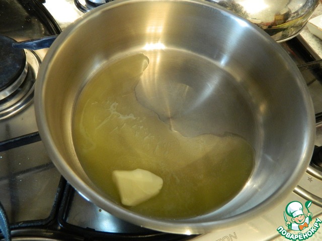 В кастрюлю с толстым дном кладем кусочек сливочного масла.