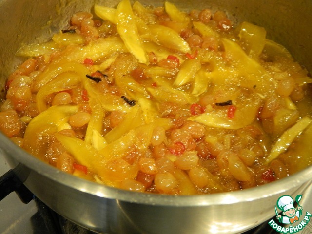 Самый вкусный соус, который я приготовила на этой неделе, это чатни из манго. Всем рекомендую попробовать. Такой соус не стыдно подавать гостям. Помимо того, что дольки манго янтарного цвета, прозрачные, очень аппетитно выглядят в соусе с желтым изюмом, это еще очень вкусное дополнение к мясу, рыбе. Ароматный соус с легкой кислинкой и небольшой остротой перца, послевкусием имбиря долго не забудется и заставит Вас снова и снова готовить его и наслаждаться новыми вкусовыми ощущениями.