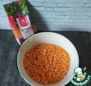 Чечевицу замачиваем в воде и оставляем на ночь. Утром воду сливаем, а крупу промываем несколько раз (это для тех кто боится вздутия от бобовых). Если проблем нет, просто промываем под проточной водой.