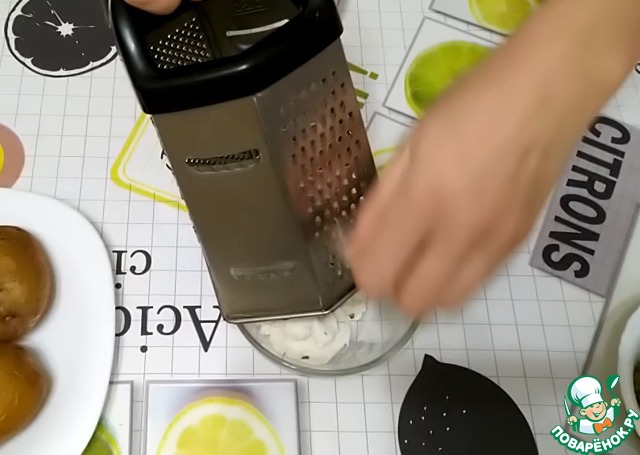 Натрем на мелкой терке чеснок. Его можно пропустить через чеснокодавку. -