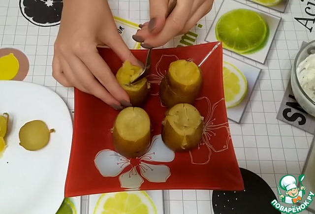 Наполняем картофель сырной начинкой.