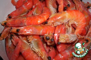- Креветки (варено-мороженые) — 750 г