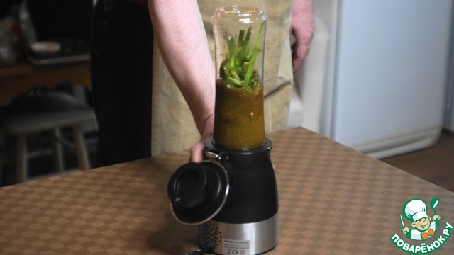 Все ингредиенты, кроме курицы, загрузить в блендер, и перетереть до однородной массы.