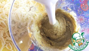 Смешиваем соус с кабачковыми спагетти. Пусть кабачок промаринуется пока мы варим спагетти.