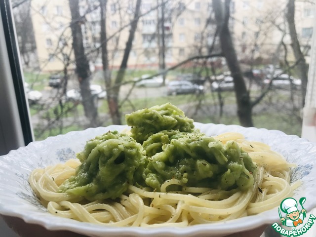 Выкладываем спагетти на блюдо, сверху укладываем кабачковые спагетти. Благодаря сочному кабачку и маслянистому от авокадо соусу, паста получается очень нежной с гармоничным вкусом. Угощайтесь!