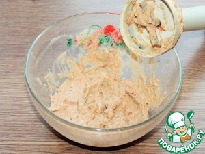 2. Смешиваем в миске плавленный сыр с вялеными помидорами.