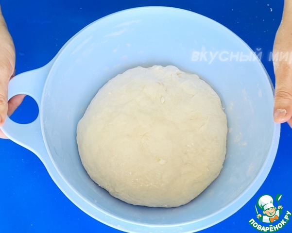 Тесто поднялось, и уже можно лепить изделия. Разделить тесто на одинаковые шарики. У меня вышло 10шт. Накрываем плёнкой и оставить на 15 минут.