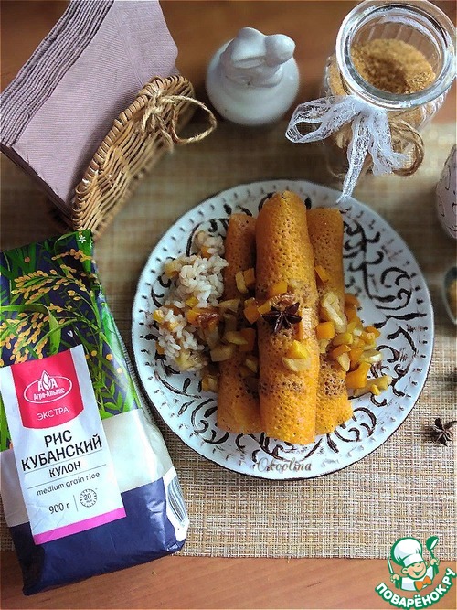 Рецепт «Постные рисово-кукурузные блины с начинкой»:
