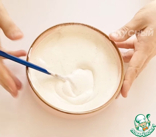 Сделать сметанный соус, для этого смешать сметану, перец, соль. Хорошо все перемешать.