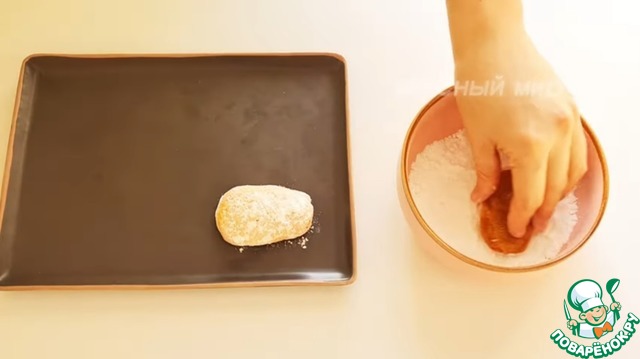 Печенье достаем из духовки, немного остудить и обвалять в сахарной пудре. Это по желанию. Можно пропустить этот момент. Домашнее песочное печенье готово.