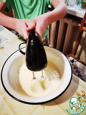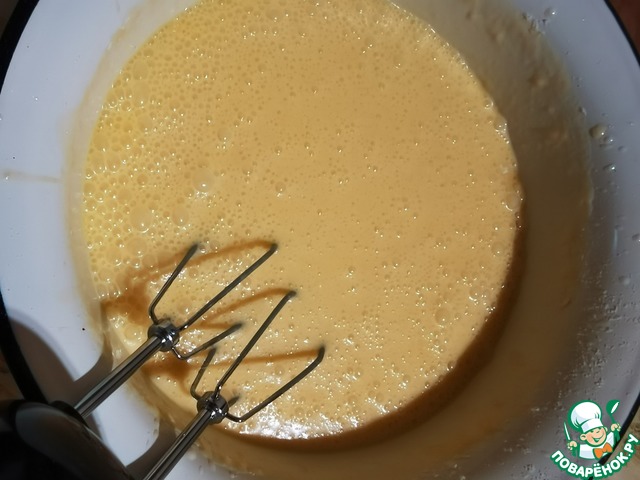 • Добавляем молоко и муку и замешиваем тесто, что бы не было комочков.