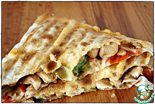 Ну, а дальше конечный вкус этого деликатеса зависит полностью от Вас. Можно обжарить на сухой сковороде с двух сторон, до появления характерных аппетитных подпалин, можно на электрогриле, на сковороде-гриль и очень вкусно получается на мангале, но тогда сборку нужно производить непосредственно перед укладкой на решётку иначе всё безбожно раскиснет и развалится...