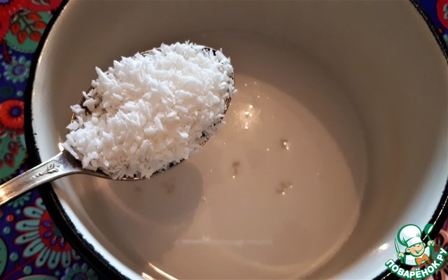- Стружка кокосовая (3 ст.л. в рис / 7 ст.л. для посыпки) — 10 ст. л.