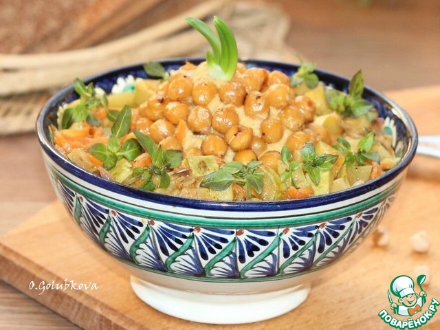 От вареного нута 100 гр отнимаем 3 ст.л. для обжарки его на сковороде и украшения верха блюда. Итого в намазке 600 гр овощей и ~ 60 грамм нута.