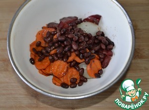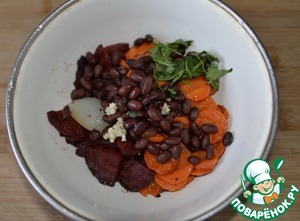 Готовые овощи из фольги кладём в миску, добавляем вареную фасоль.