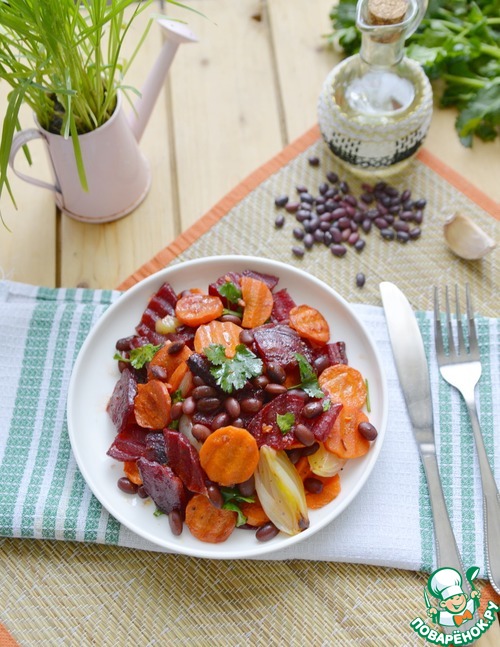 Рецепт «Салат из фасоли с запечёнными овощами»: