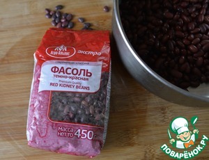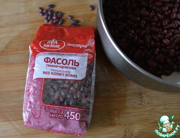 Берём фасоль, я использовала тёмно-красную от Агро-Альянс. Фасоль хорошо промываем, лучше замочить на ночь. Далее воду сливаем, заливаем свежей водой в соотношении 1 к 3, доводим до кипения и варим на среднем огне до готовности, 60-90 минут.