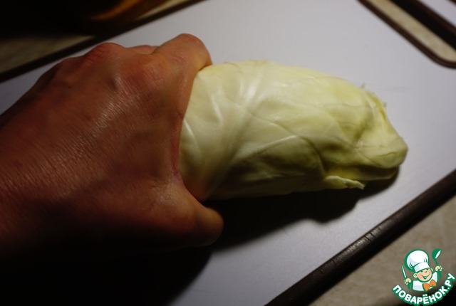 Сразу хочу поделиться лайф-хаком. Очень часто, когда мы традиционно отрезаем капусту и шинкуем, на срезе капуста начинает портиться. А вот если обрывать по листочкам, то такого эффекта не будет.