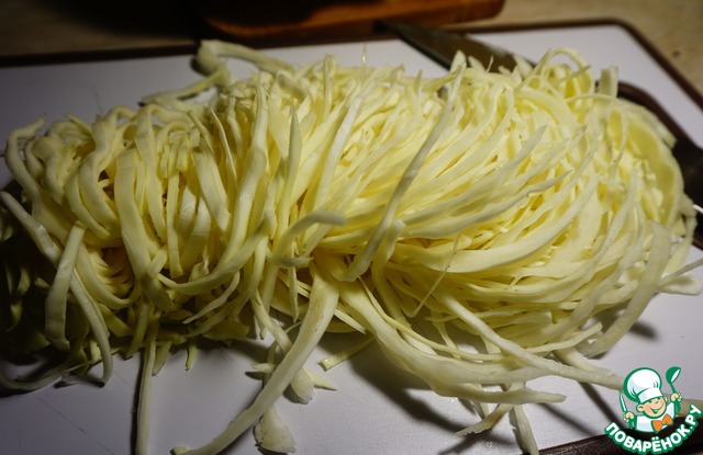 И нарезаем. Скажу честно, в таком виде их шинковать удобнее, чем в традиционном. Попробуйте. Может вам понравится.